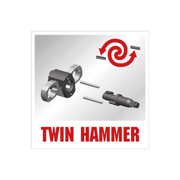 Le mécanisme de percussion Twin Hammer développe une forte énergie à chaque impact et convient, de ce fait, pour des applications lourdes.
