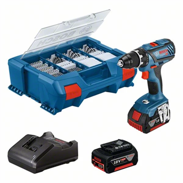 Cette perceuse visseuse Bosch GSR 18V-28 est accompagnée des éléments les plus importants pour regrouper toutes les réponses à vos besoins d’outils, en un coffret.